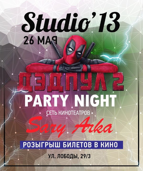 В эту субботу, к нам летит не птица и не самолет, и, даже — не супермэн, а самый дерзкий, как штурмовик имперский, герой всех времен и народов — Deadpool! Совместной акцией от сети кинотеатров СарыАрка @cinema.krg и @studio13club, Welcome! . Line up: Ilya Timofeyev Pastor Alex RomanSaimon Kazakhflava live . Вход девшукам БЕСПЛАТНЫЙ до 01:00. После: Girls — 1000 тг / Boys — 2000 тг . Клубные карты и флаера действительны всю ночь . ВНИМАНИЕ! Действует FС & DC Актуальный внешний вид на эти выходные — ЭЛЕГАНТНАЯ КЛАССИКА или МОДНЫЙ… — Читать дальше