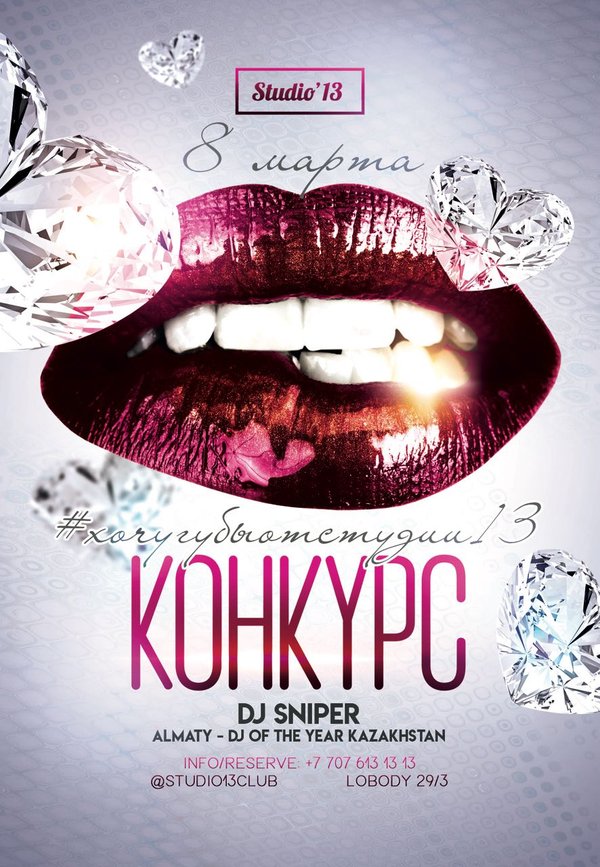 ткрытым профиль. . Каждой будет присвоен порядковый номер — и — уже на следующей неделе генератором случайных чисел будут выбраны 13 финалисток — которых мы пригласим на жаркую вечеринку 8 марта в Studio’13 — с участием Dj Sniper — 3-екратный dj года в Казахстане, резидент «Миксология» на NE.FM // the Cream records // Bedroom Muzik // Sheeva Records . Всем удачи и любви, девчули! .