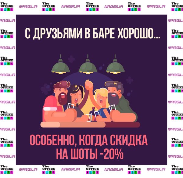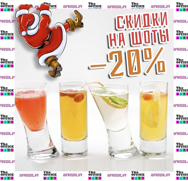 Осталось совсем немного до НОВОГО ГОДА!) Так проводи его компании своих друзей в последние рабочие деньки The OFFICE Nargilia Lounge Караганда! СЕГОДНЯ на все коктейли скидка -20% Телефон: Адрес: ул. Мустафина 32б (за кинотеатром Ленина) Наш хэштег: