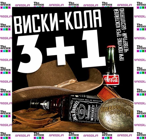 Закажи сегодня у нас 3 виски/колы, а четвертый будет в подарок от нашего заведения Телефон: Наш хэштег: