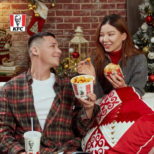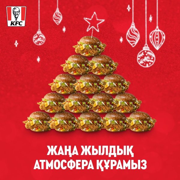 Сиқырлы Жаңа жылды KFC жеп, қарсы ал ️ Осы тамаша уақытта жақындарыңмен кездесіп, KFC қосымшасында дәмді бургер мен снэкке тапсырыс бер. Саған қымбат адамдармен өткізген уақытыңнан ләззат ал __ Встречай волшебный Новый год вместе с KFC ️ В это прекрасное время встречайся с близкими и заказывай вкуснейшие бургеры и снэки в приложении KFC. Наслаждайся временем, проведённым с теми, кто дорог