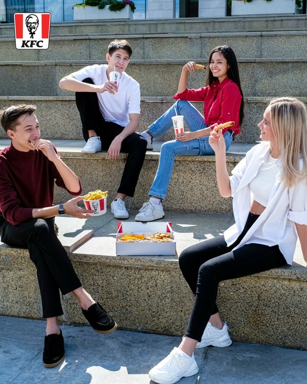 Лето создано для улыбок, встреч с друзьями и KFC! Зови близких, делись последними новостями и наслаждайся самой нежной курочкой ️ ___ Жаз достарыңмен кездесіп, күліп-ойнап, KFC жеуге арналған! Жақындарыңды шақырып, соңғы жаңалықтарыңды айтып, ең жұмсақ тауық етінен дәм тат ️