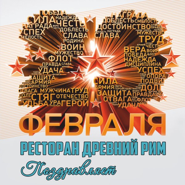 С праздником дорогие защитники отечества!!!Ресторан Древний Рим поздравляет всех мужчин и всех женщин которых они защищают с праздником. Мы приглашаем провести этот замечательный солнечный день в стенах нашего ресторана.Мы вас любим и ждем вас в гости в нашем ресторане Древний Рим…