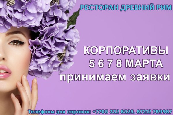 Мы готовы к встрече гостей… 7,9,10 Марта Живая музыка. 8 Марта праздничная программа «Женщина в любви» — Ведущая Алена Гурова, — Танцевальный коллектив Shine. — Розыгрыш ценных призов, — Главный приз золотое кольцо. Мы ждем вас в гости в ресторан Древний Рим…