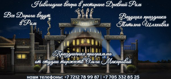 жете услышать знаменитые песни, увидеть зажигательные танцы и попробовать блюда разных народов мира. В ресторане Древний Рим вы окажетесь в настоящей новогодней сказке. Мы ждем вас в гости в ресторане Древний Рим!!!