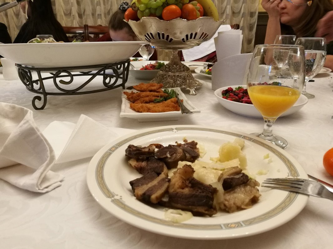 Приличный вкусный завтрак в уютном ресторане
