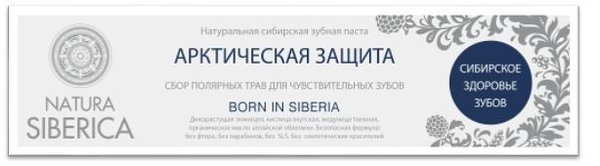 ию налета. Сибирь — уникальное место нашей планеты. Экстракты и масла трав, растущих в Сибири обладают чудодейственными целебными свойствами, которые были известны еще сотни лет назад. Компания Natura Siberica рада представить Вам долгожданную линию «Born in Siberia», натуральных зубных паст на основе экстрактов дикорастущих трав Сибири, которые оказывают направленное защитное, восстанавливающее, укрепляющее действие и подарят вашим зубам здоровую белоснежную улыбку надолго. Не содержит: SLS SLES Парабенов Хлоргексидина Минеральных масел Искусственных красителей Состав/Ingredients: Aqua with infusions of: Rhodiola Rosea Root ExtractWH (экстракт родиолы розовой), Achillea Asiatica ExtractWH (экстракт азиатского тысячелистника), Cetraria Nivalis ExtractWH (экстракт кладонии снежной), Panax Ginseng Root Extract* (экстракт женьшеня дальневосточного), Betula Alba Sap* (березовый сок), Aralia Mandshurica Extract (экстракт аралии маньчжурской); Sorbitol, Silica, Cocamidopropyl Betaine, Xanthan Gum, Mineral Salts (cоли камчатских термальных источников), Chitosan, Polygonum Fagopyrum (Buckwheat) Flower, Hydrogenated Castor Oil, Simmondsia Chinensis (Jojoba) Seed Extract, Algin, Calcium Glycerophosphate, Sodium Saccharin, Travertine (вулканический кальций), Pineamidopropyl BetainePS, Hippophae Rhamnoidesamidopropyl BetaineHR, Aroma, Citric Acid, Sodium Benzoate, Potassium Sorbate, CI 74260, Geraniol, Linalool, Limonene. (*) – Органические ингред