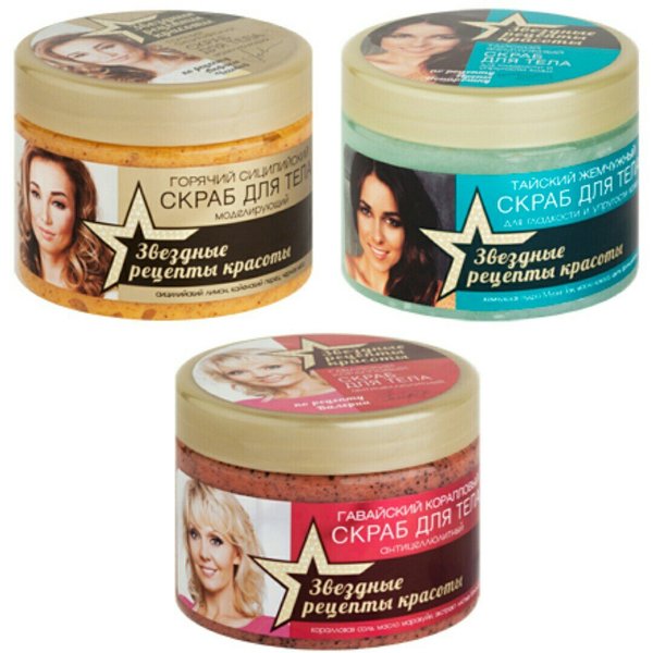 ДЛЯ ТЕЛА антицеллюлитный по рецепту Валерии Гавайский скраб для тела – лучшее средство для профилактики целлюлита. Он нежно очищает и подтягивает кожу, возвращая ей гладкость и упругость. Коралловая пудра усиливает обменные процессы и препятствует образованию апельсиновой корки. Органическое масло маракуйи оказывает питательное и смягчающее действия. Банановые листья богаты витамины С и В6, которые играют важную роль в поддержании целостности и эластичности кожи. ТАЙСКИЙ ЖЕМЧУЖНЫЙ СКРАБ ДЛЯ ТЕЛА для гладкости и упругости кожи по рецепту Ирены Понарошку Восхитительный тайский скраб деликатно очищает, способствует обновлению и омоложению клеток, устраняет целлюлит и способствует выравниванию цвета кожи. Органическое кокосовое масло питает, делает кожу гладкой и упругой. Нежный аромат цветов Франджипани возвращает гармонию и внутреннее равновесие, даря минуты истинного наслаждения. ОБЪЕМ 300 мл