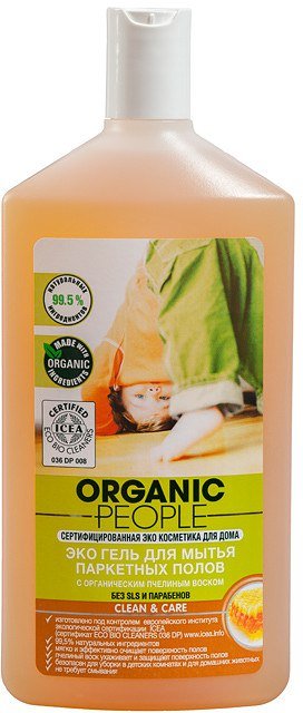 Эко гель Organic People для мытья паркетных полов с органическим пчелиным воском CLEAN&CARE Описание Натуральное и в то же время эффективное моющее средство, на основе органического пчелиного воска, который бережно ухаживает и защищает поверхность полов, придавая им естественный блеск и гладкость. Содержит 99,5% натуральных компонентов. После применения полы станут невероятно чистыми, а комната наполнится легким ароматом. Безопасен для уборки в детских комнатах и для домашних животных. Не требует смывания. В отличие от большинства моющих средст… — Читать дальше