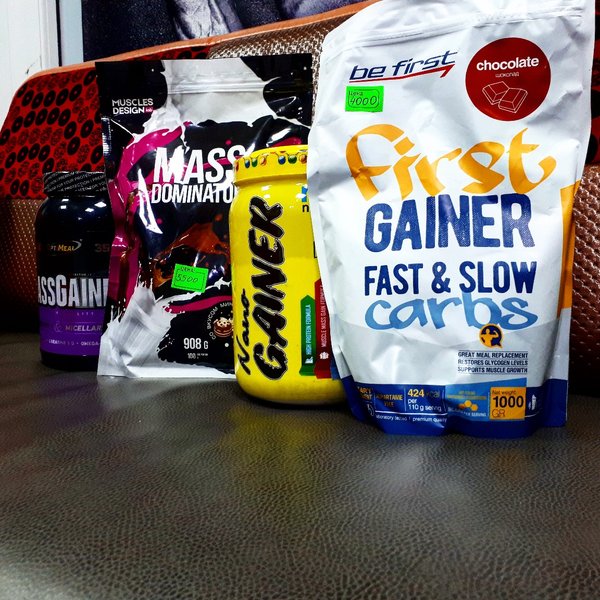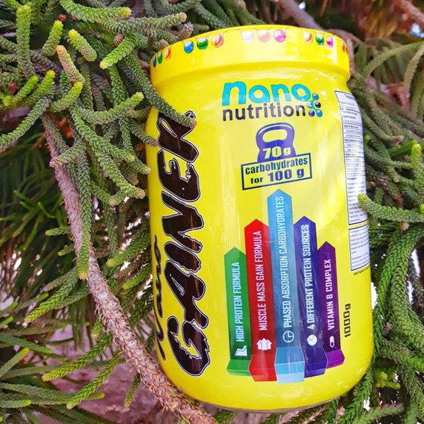 ным. НЕ ВЕДИСЬ НА УЛОВКИ МАРКЕТОЛОГОВ Чудо средств не существует. Есть только одна правда: что бы набирать мышечную массу, нужны тренировки, отдых, достаточное количество белка и избыток калорий. 200 МЛ КОКТЕЙЛЯ РАВНОЦЕННЫ БОЛЬШОЙ ПОРЦИИ МЯСА С РИСОМ Нельзя перепрыгнуть физиологические пределы и заставить организм переваривать и усваивать килограммы продуктов за один день. Нужны месяцы и годы, что бы желудочно-кишечный тракт привык перерабатывать нужные объемы пищи. Вот почему все атлеты на массанаборе получают дополнительные калории из небольших порций легкоусвояемого гейнера. Для роста мышечной массы необходимо употреблять большое количество калорий и гейнер позволяет существенно разгрузить пищеварительную систему. Усвоить порцию гейнера намного легче, чем порцию мяса с рисом, при этом, эффект один и тот же. NANO GAINER — ТОПЛИВО ДЛЯ ВАШЕГО ОРГАНИЗМА Его основа — углеводы: качественный мальтодекстрин с низким декстрозным эквивалентом, изомальтулоза и декстроза. Мальтодекстрин имеет сравнительно небольшую скорость расщепления, обеспечивая тем самым длительное и равномерное поступление глюкозы в организм. Являясь продуктом, устойчивым к кислотам желудочного сока, мальтодекстрин по своим свойствам близок к пищевым волокнам и благотворно воздействует на кишечник, а так же обладает ценной способностью стимулировать рост полезной микрофлоры кишечника (бифидобактерий). Декстроза перед и во время физической нагрузки поддерживает высокий уровень гликогена в мышцах. Это увеличивает количество доступной энергии и отдаляет утомление. Если принимать декстрозу после тренировок, потери гликогена восстанавливаются на 237% быстрее, чем без поступления углеводов, а сочетание с протеинами синергично усиливает этот эффект. Изомальтулоза — дисахарид или, другими словами, углевод образованный объединением двух меньших сахаров. Этот тип связи замедляет скорость абсорбции, снижает гликемический индекс и реакцию инсулина, что дает более продолжительное поступление энергии. Основным источником белка в NANO GAINER является концентрат сыворотки из живого молока, полученный без нагрева сырья. Это означает, что Вы получаете максимально полезный белок из обезжиренного молока, произведенный методом холодной фильтрации, без химического и ферментативного воздействия, полностью сохранивший свои натуральные свойства без потери биологической ценности и аминокислот. Другими источниками белка являются изолят и гидролизат сывороточного протеина с наивысшей скоростью усвоения, а так же мицеллярный казеин, который имеет низкую скорость абсорбции из желудочно-кишечного тракта, порция которого усваиваться в течение 6—8 часов после употребления. Белок является не только жизненно важным строительным компонентом для мышечной ткани, но также отвечает за синтез анаболических гормонов, таких как инсулин, гормон роста и IGF-1. Углеводы, в свою очередь, запасаются в виде гликогена в мышцах и являются главным источником энергии. Они помогают экономить белок, чтобы он мог использоваться, прежде всего, для роста и восстановления. Без достаточного количества углеводов, большая часть ценного белка будет израсходована на выработку энергии, а не на наращивание мышц. цена 4 000 тенге