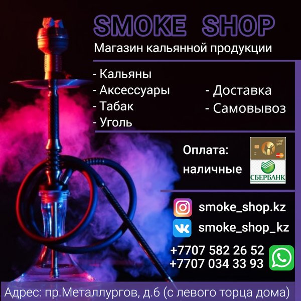 Официальная группа Вконтакте магазина табака и кальянов Smoke Shop в Темиртау