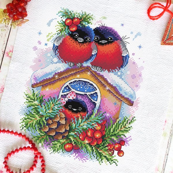 Сабина Каирбекова (15.01.2020): Посмотрите, как уютно устроились снегири на волшебной зимней композиции. Эти красногрудые красавцы всегда ассоциируются с зимой, потому что прилетают к нам с севера вместе с первым снегом. ⠀ А вы знали, что снегирь — не только красавец, но и галантный кавалер. Лучшие грозди рябины снегирь, будь он даже очень голоден, все равно уступит самке. ⠀ Набор для вышивания в наличии Размер — 23х18см Стоимость — 3000 тг ⠀