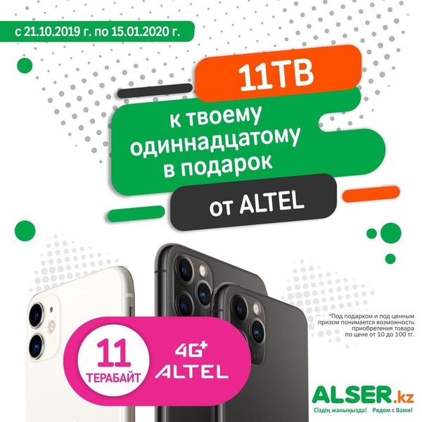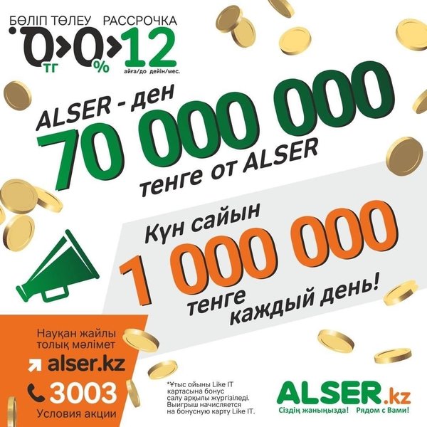 Подробности акции на сайте alser.kz и по номеру #3003 (звонок с мобильного бесплатный).