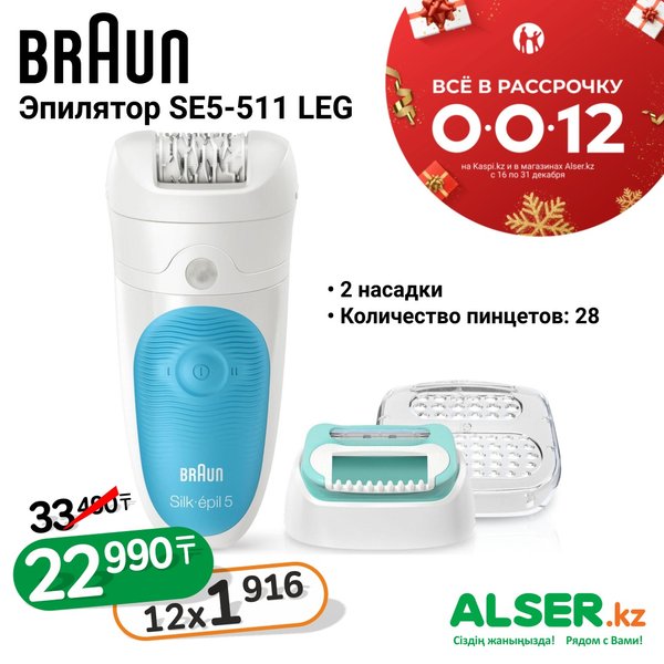 Сейчас Braun Silk-épil 5—511 представлен в Alser по сниженной цене! К тому же до 31 декабря товар можно приобрести в рассрочку до 12 месяцев через Kaspi Bank.