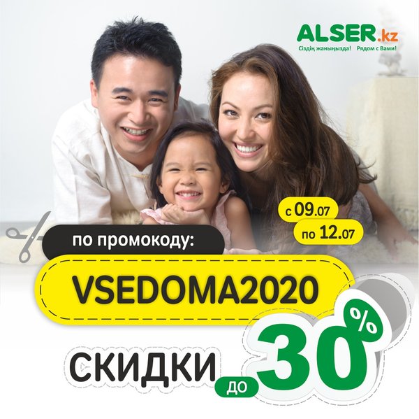 гими акциями В случае вопросов мы всегда рады ответить в комментариях, ЛС и по номеру 3003! *** Кейде үйге қайтқан қандай жақсы! Біз қазір тағыда да, жоқ дегенде екі апта бойы үйдеміз – oh myyyy. Үйіңізді біраз түрлендіретін, ALSER.KZ-тен тиімді бағада және науқандық ұсыныстарды пайдаланып, сауда жасауға тағы бір себеп пайда болды! ALSER.KZ-тен VSEDOMA2020 промокодын пайдаланып, сауда жасаңыз да, 30% дейін ЖЕҢІЛДІК алыңыз! Тауарға жеңілдікті қалай аламыз: 1) тауарды таңдап, бірден себетке өтеміз 2) промокод бөліміне VSEDOMA2020 енгіземіз 3) егер тауарға жеңілдік жүретін болса, енді бұрынғыдан да арзан болады! Маңызды! Науқан басқа науқандармен бірге әрекет етпейді Барлық сұрақтарыңызға жауапты жеке хабарлама, пікір жазу немесе 3003 нөміріне хабарласу арқылы ала аласыздар.