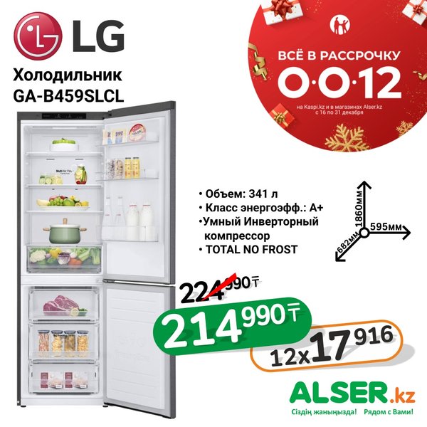 Alser-де керемет тоңазытқышқа керемет жеңілдіктер! LG GA-B459SLCL тоңазытқышында тағамдарды балғын түрінде бұрынғыдан да ұзақ сақтаңыз!