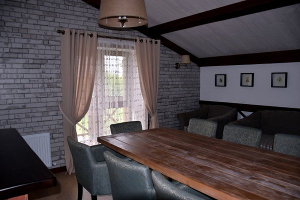 Веранда Веранда в доме является местом для тихого отдыха среди большого количества комнатных растений. Высокие окна, витражного типа, декорированы графичными, контрастными карнизами и шторами на петлях, которые мягко рассеивают солнечный свет в помещении.