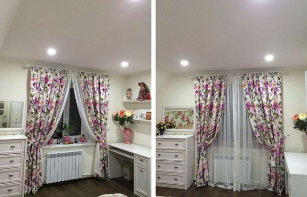 и не цепляясь друг за друга. 3 Для легких занавесок подходят конструкции с любым типом крепления ― как потолочные, так и настенные. Для тяжелых портьер желательно выбрать потолочное крепление, которое способно выдерживать большие нагрузки. Но если потолок натяжной, необходимо заранее, до его натягивания предусмотреть на нем нишу для крепления карниза. 4 Расположение отопительных труб и размеры подоконника тоже влияют на выбор карниза. Его следует закрепить таким образом, чтобы все эти элементы не мешали свободному свисанию штор. 5 Не забывайте о том, что грамотно выбранный и правильно смонтированный карниз способен скрыть недостатки, и подчеркнуть достоинства интерьера в целом. Так, узкое окно можно «расширить», закрепив над ним длинный карниз со шторами, которые частично или полностью закрывают не только оконный проем, но и стену, а низкий потолок «приподнять» с помощью потолочного карниза и штор, свисающих от потолка и до самого пола.
