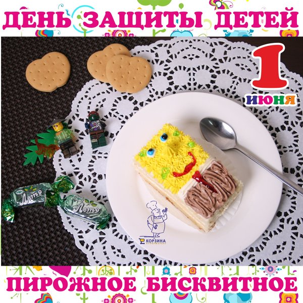 Поздравляем с Днём защиты детей и желаем по-настоящему счастливого и беззаботного детства, крепкой любви родителей и весёлых игр с друзьями, мирного неба и красивой мечты. Для наших маленьких покупателей у нас есть в продаже замечательное пирожное Бисквитное, во всех супермаркетах «Корзина».
