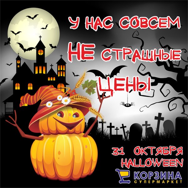 31 ОКТЯБРЯ- СЕГОДНЯ ХЭЛЛОУИН — ЭТО НЕ ТОЛЬКО ЧИСТО АМЕРИКАНСКИЙ ПРАЗДНИК, НО И ТЕМА ДЛЯ БОЛЬШИНСТВА ВЕЧЕРИНОК. В США 31 ОКТЯБРЯ ЯВЛЯЕТСЯ ВТОРЫМ ПО ВЕЛИЧИНЕ ТОРЖЕСТВОМ ПОСЛЕ РОЖДЕСТВА И НОВОГО ГОДА. В РОССИИ И СТРАНАХ ЕВРОПЫ ЭТО ОТНОСИТЕЛЬНО НОВАЯ ТРАДИЦИЯ, НО ТЕМ НЕ МЕНЕЕ ЕЖЕГОДНО ВСЕ БОЛЬШЕ ЛЮДЕЙ НАРЯЖАЮТСЯ В САМЫЕ НЕОБЫЧНЫЕ КОСТЮМЫ И УСТРАИВАЮТ УЛИЧНЫЕ ШЕСТВИЯ. ПОЗДРАВЛЯЕМ ВСЕХ С ПРАЗДНИКОМ И ЖДЕМ ВАС ЗА ПОКУПКАМИ В НАШЕМ СУПЕРМАРКЕТЕ!!!