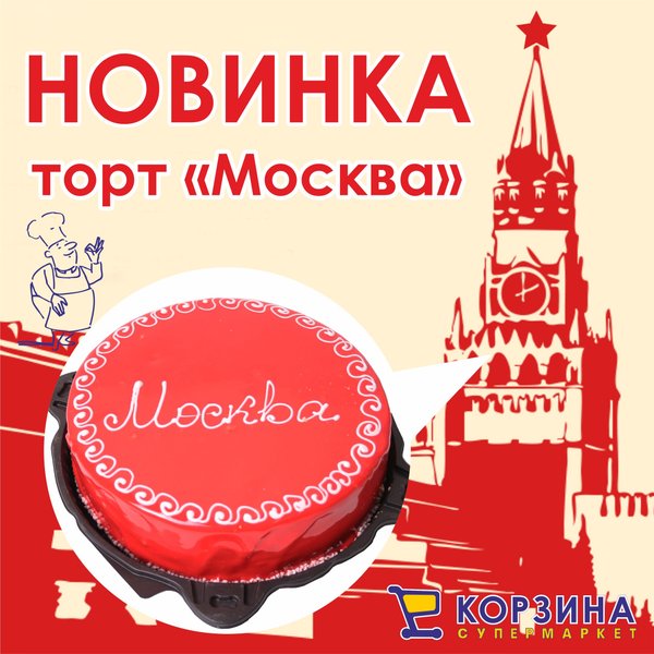 Дорогие подписчики! Рады поделиться с Вами нашими новинками! торт «Москва» Эклер «Сникерс» Эклер «Чайный» рулет «Морковный» с 24 мая во всех супермаркетах «Корзина»