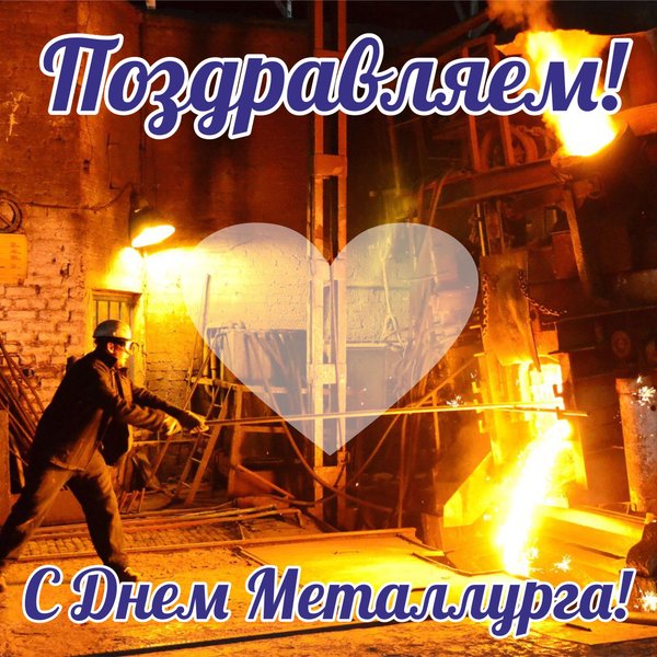 УВАЖАЕМЫЕ МЕТАЛЛУРГИ! ОТ ВСЕЙ ДУШИ ПОЗДРАВЛЯЕМ ВСЕХ РАБОТНИКОВ С ПРОФЕССИОНАЛЬНЫМ ПРАЗДНИКОМ — ДНЁМ МЕТАЛЛУРГА! ЭТО ПРАЗДНИК СИЛЬНЫХ И МУЖЕСТВЕННЫХ ЛЮДЕЙ. В ЭТОТ ДЕНЬ, ПОСВЯЩЁННЫЙ ВАШЕМУ ГЕРОИЧЕСКОМУ ТРУДУ, ХОЧЕТСЯ ПОЗДРАВИТЬ ВСЕХ, КТО СВЯЗАЛ СВОЮ ЖИЗНЬ С ОГНЕННОЙ ПРОФЕССИЕЙ, И ПОЖЕЛАТЬ ВАМ, ВАШИМ РОДНЫМ И БЛИЗКИМ СЧАСТЬЯ, ЗДОРОВЬЯ, СЕМЕЙНОГО БЛАГОПОЛУЧИЯ. ПУСТЬ В ВАШЕЙ РАБОТЕ БУДЕТ БОЛЬШЕ ПОБЕД И МЕНЬШЕ РАЗОЧАРОВАНИЙ, И ПУСТЬ ОНА ДАРИТ ВАМ ТОЛЬКО РАДОСТЬ! С ПРАЗДНИКОМ ВАС, МЕТАЛЛУРГИ!