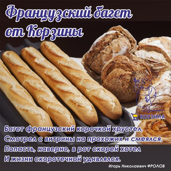 волов Франции. И совсем не обязательно ехать в Париж, чтобы попробовать настоящий багет. Добро пожаловать к нам за багетом. Сегодня Французский багет в акции «Товар Дня» по специальной цене 75 тенге во всех супермаркетах «Корзина».