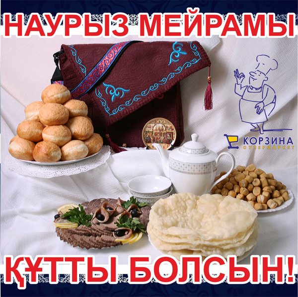 иональные игры. На Наурыз часто устраивались соревнования между юношами в борьбе, или скачках. Иногда юноши соревновались в умении держаться в седле с девушками. Также на Наурыз устраивались айтысы, где в своем мастерстве соревновались акыны — поэты-певцы-импровизаторы. А мы напоминаем, что к своему праздничному столу Вы можете заказать: Баурсаки Шелпеки Ши баурсаки Хворост Чак – чак Во всех супермаркетах «Корзина» Тел для предварительных заказов: С/м Корзина — Язева 14/1Тел.: вн. 304 С/м Корзина — Степной 3 дом 3б Тел.: вн. 382 С/м Корзина — 22 микрорайон дом 24Тел.: вн. 313 С/м Корзина г. Темиртау- пр. Металлургов 33Тел.: вн.304