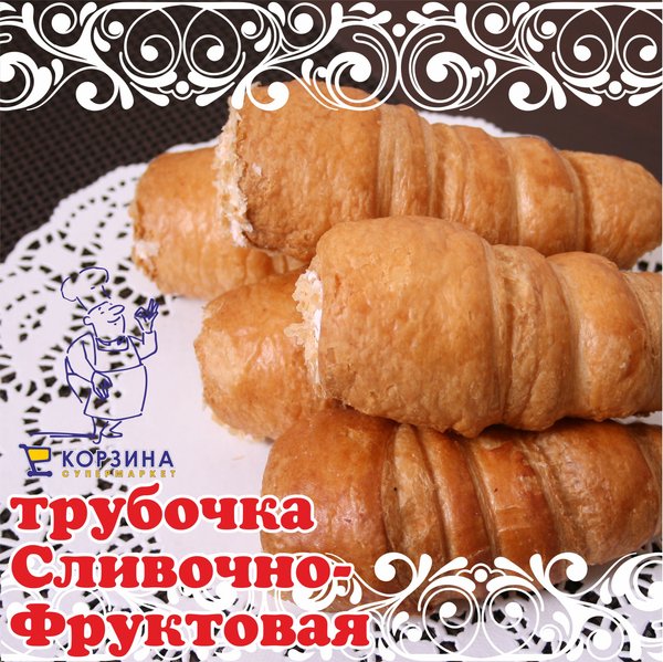 Трубочка Сливочно-Фруктовая! Это трубочка с кремом из сливок и клубничным конфитюром. Очень нежный вкус. Рекомендуем попробовать и написать нам свои отзывы.