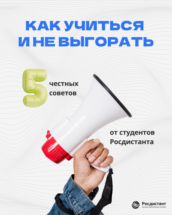 Выгорание — не миф. А учёба — не марафон. Мы спросили студентов Росдистанта, как учиться и не выгорать. И собрали 5 работающих советов, которые помогут удержать ритм и не сгореть. Сохраняйте, если учитесь — или собираетесь Вам тоже есть что добавить? Пишите в комментариях — соберём народную инструкцию по выживанию на дистанционке!