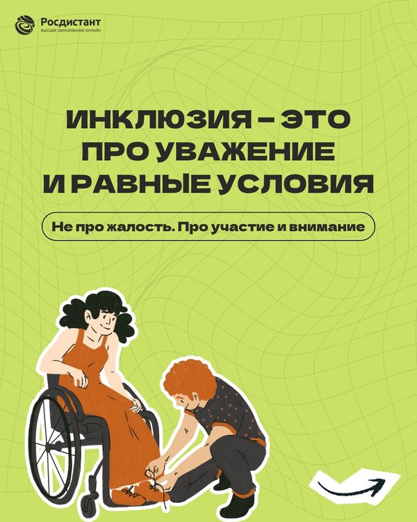 Инклюзия — это про внимание, а не про жалость Многие думают, что общение с людьми с разными особенностями требует особой осторожности. На самом деле всё намного проще — истинная инклюзия начинается с простого человеческого отношения, уважения и равных возможностей для всех. Листайте карточки, чтобы узнать, как строить настоящие, лёгкие и равноправные отношения в жизни и на работе, и что помогает каждому чувствовать себя частью сообщества