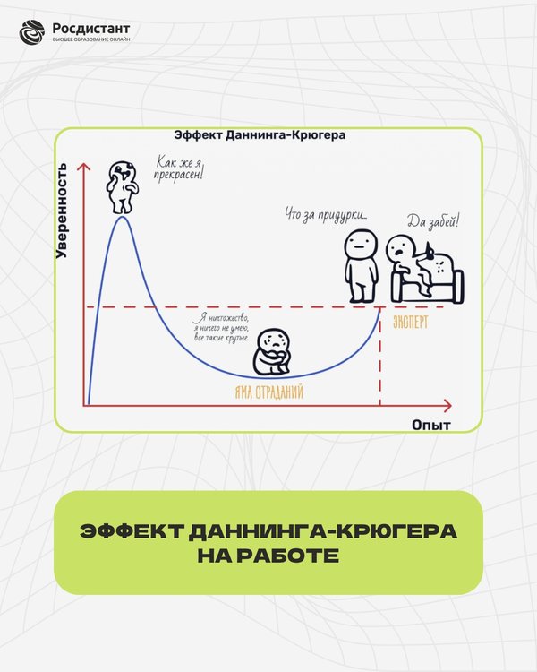Как использовать этот эффект в свою пользу: 1⃣ Отслеживайте уверенность — если кажется, что «всё понятно», попробуйте покопать глубже. 2⃣ Не бойтесь сомневаться — это не слабость, а признак профессионального роста. 3⃣ Учитесь у тех, кто задаёт вопросы, а не только даёт ответы. Настоящее развитие начинается не тогда, когда вы уверены, что знаете всё, а когда понимаете, что учиться можно бесконечно!