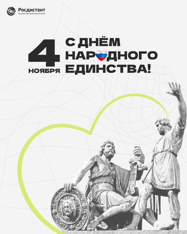С Днём народного единства! Этот праздник напоминает: сила страны — в людях, которые умеют объединяться ради будущего. Ради идей, знаний, семьи и общего дела. Учёба, работа, развитие — всё это путь, который легче проходить вместе. Ведь когда рядом единомышленники, цели становятся достижимее. Пусть этот день вдохновит вас на новые открытия и напомнит: каждый из нас — часть большого и сильного «мы». С праздником, друзья!