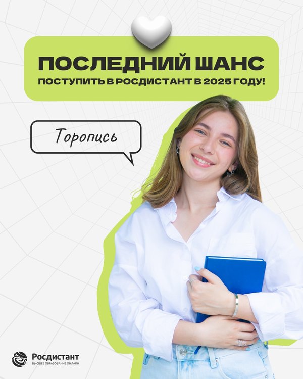 ой формат подходит не всем. А что в Росдистанте Это обучение, которое не разрывает ваш график, а аккуратно вписывается в него: — лекции и материалы доступны 24/7 онлайн; — вы сами выбираете удобное время для занятий; — можно спокойно совмещать учёбу с работой, семьёй, переездами; Это формат для тех, кто ценит время, уже строит карьеру, хочет сменить профессию и учится осознанно. Учёба должна помогать вам расти, а не становиться препятствием. Посмотрите направления и выберите то, что откликнется именно вам:
