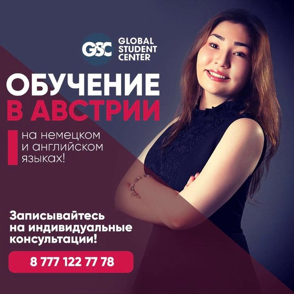 Астана! Все кто интересуется обучением в Австрии, у нас приехал представитель и вы можете записаться на личную встречу с Эльнорой Маматаевой! Очень доступно и все чётко объясняется! Программы и на немецком и английском языке, более 200 специальностей, бакалавр и магистратура! Поэтому записываемся на индивидуальную встречу в Астане по Тел.: Global Student Center — Образовательный Центр