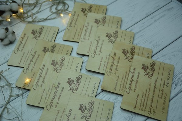 Гораздо приятнее вручить деревянный сертификат, нежели всеми привычные из бумаги Его можно упаковать в конверт или перевязать яркой лентой