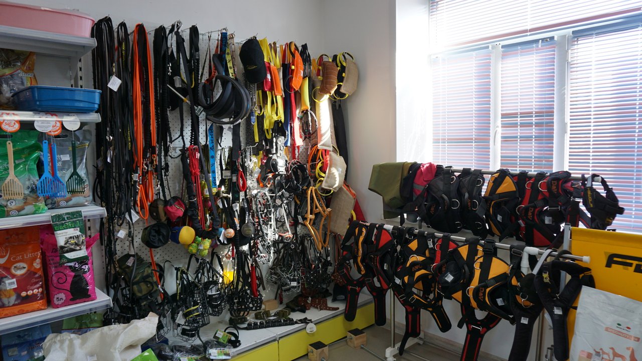 Также в центре имеется магазин товаров для животных. Широкий выбор товаров — от витаминов, домиков и расчесок до профессиональной амуниции для дрессировщиков, кормов премиум-класса, эксклюзивных вышитых ошейников и профессиональных ринговок для выставочных собак.