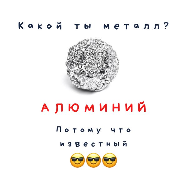 Какой металл больше похож на вас? Отмечайте смайлики в комментариях! Алюминий Это самый распространенный металл на Земле, на него приходится более 8% всей массы земной коры, и это третий по распространенности химический элемент на нашей планете после кислорода и кремния. Олово Когда температура ниже 13,2 ℃, олово начинает разрушаться. Когда температура ниже -30 ~ -40 ℃, оно немедленно превращается в порошок, это явление часто называют «оловянной чумой». Золото Золото ковкое и пластичное: без нагрева его можно раскатать в тончайшие л… — Читать дальше