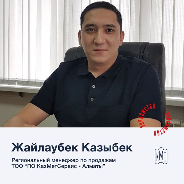 Всем привет! Меня зовут Абдыкадыр Мейрамбек. В Казметсервис я пришел работать на должность менеджера по продажам в 2021 году. Сейчас я руководитель отдела продаж. Работать в ТОО ПО Казметсервис Алматы мне очень нравится. Всегда работа разная и очень интересная. В свободное от работы время я играю в теннис, увлекаюсь охотой и развиваю себя. Связаться с менеджерами отделов продаж: Алма-Ата С полным ассортиментом нашей продукции и услуг вы можете ознакомиться на нашем сайте kzmc.kz