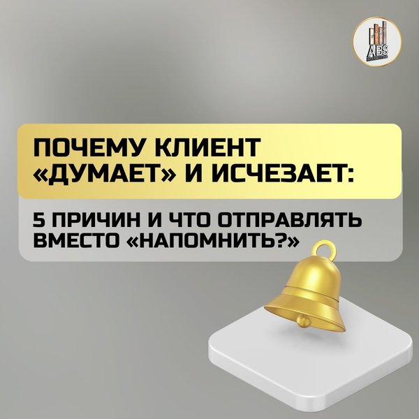 Человек думал про одно, а услышал другое. Что отправлять вместо «напомнить?» — короткое уточнение + полезность: «Подскажите, что важнее: сроки или бюджет?» «Могу предложить 2 варианта решения. Какой формат ближе?» Так вы возвращаете диалог через смысл, а не давление. Оставьте заявку на бесплатную консультацию в ABS-Marketing — разберём вашу коммуникацию и дадим сценарии касаний, которые возвращают клиентов в диалог.