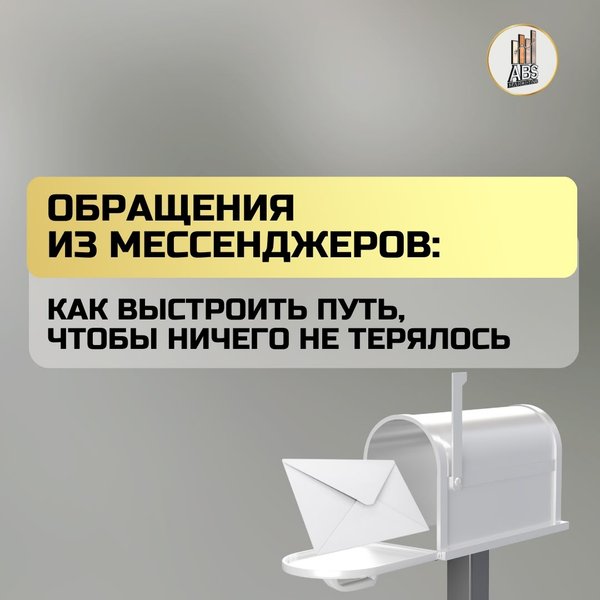 орость ответа важнее идеального текста. 5. Дожим: 2–3 касания по правилам, без давления. Когда путь «сообщение → CRM» собран, вы начинаете управлять не перепиской, а конверсией. Оставьте заявку на бесплатную консультацию в ABS-Marketing — настроим процесс обработки обращений и уберём потери в мессенджерах!