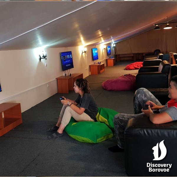 Бассейн; СПА-центр, детская игровая (1200 м²), уличная детская игровая площадка, Веревочный парк, троллейная трасса, Настольный теннис, настольные игры, педагогическая программа и мнгое другое в детском лагере Дискавери Боровое. Так же за отдельную плату мы можем предложить медицинский блок и водогрязелечебницу. Забронировать вы можете на нашем сайте или по телефону, ⠀ Боровое начинается здесь! ⠀