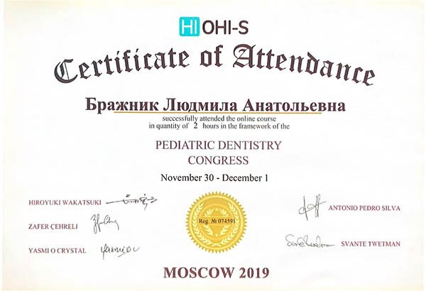 2019 — «PEDIATRIC DENTISTRY CONGRESS», организатор HI OHI–S, г. Москва;