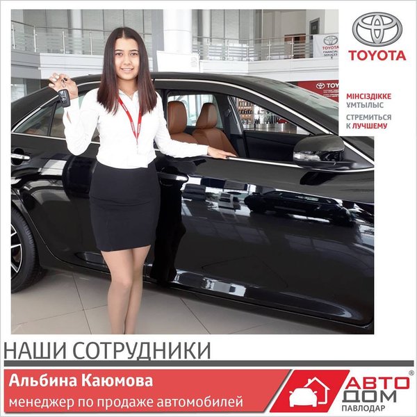 Елена Матяш (27.07.2017): Автомобиль всегда подчеркивает статус его владельца. И Вы имеете право предъявлять к нему высокие требования. Специальная серия Toyota Camry Exclusive была создана, чтобы соответствовать Вашему премиальному статусу. Менеджер по продажам Альбина Каюмова приглашает Вас познакомиться поближе с этим автомобилем и ощутить все его преимущества. Тойота Центр Павлодар