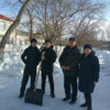 Бригада по уборке снега в качестве благотворительной помощи произвела очистку от снежных завалов прилегающей территории дома юношества «Жас дәурен».