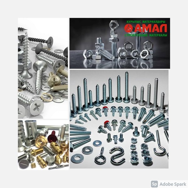 ортименте:гвозди и шплинты; болты, гайки, шайбы и винты; обычные шурупы и саморезы; заклепки различных видов; шпильки; дюбели и анкеры; петли и различные крепежные приспособления в виде кронштейнов. Ждем Вас!!! Наш адрес: ул.Малая объездная, 6 ежедневно без перерыва и выходных Тел.: ⠀ Ул. Кудайбердиева, 2/1 ежедневно без перерывов и выходных Тел.: