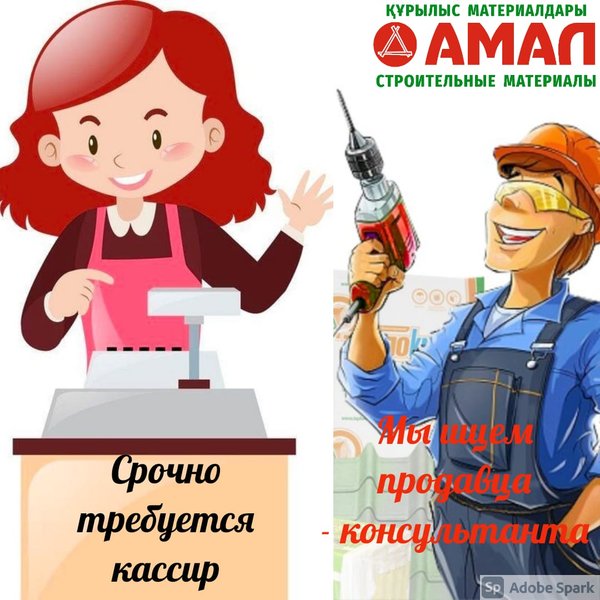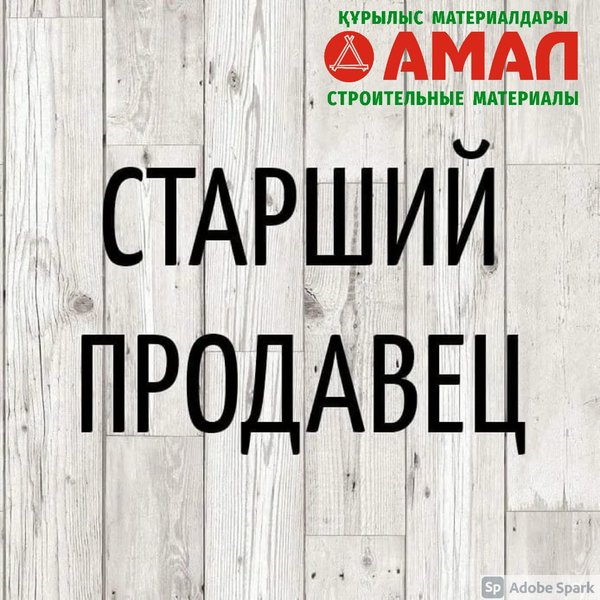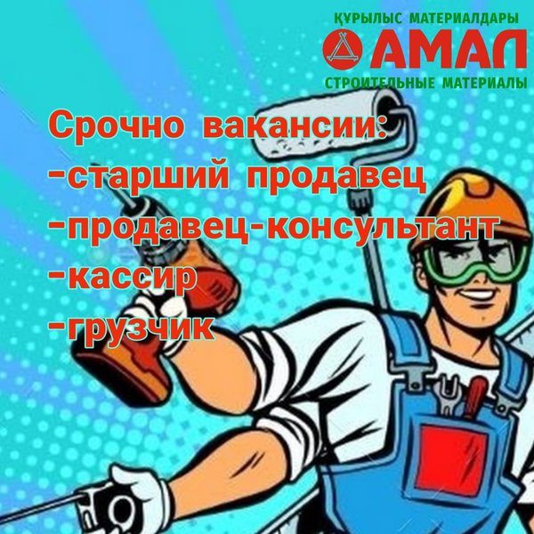 В коллектив строительного магазина «Амал» требуется старший продавец: -гибкий график -дружный коллектив -заработная плата от 160.000 тенге. -карьерный рост. Требуется техничка: -график 2/2 -заработная плата от 65.000 тенге. Ждем Вас!!!! Наш адрес: Ул. Кудайбердиева, 2/1 С 9.00 до 20.00 без перерывов и выходных Тел.: ул.Малая объездная, 6 С 9.00 до 20.00 без перерыва и выходных Тел.:, ⠀