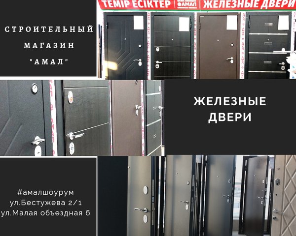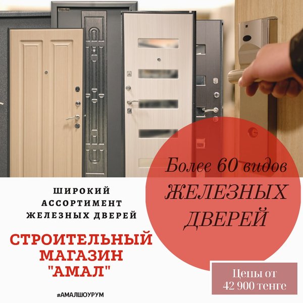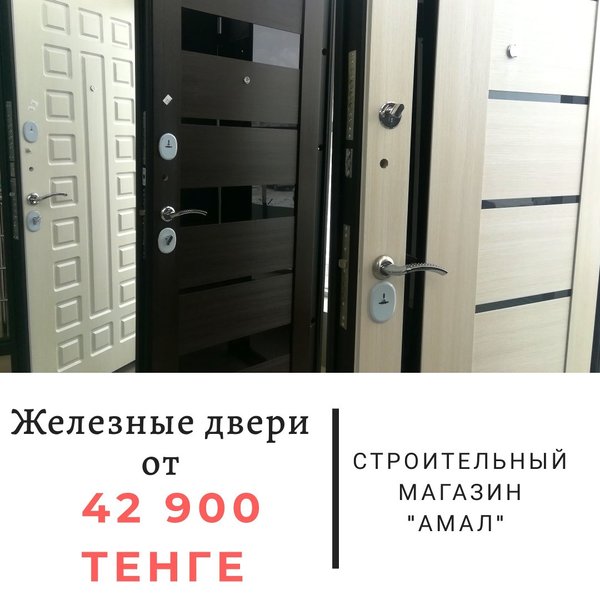 ЖЕЛЕЗНЫЕ ДВЕРИ ОТ 42 900 тенге! ____________________________ Предлагаем вашему вниманию наши металлические двери. Вас приятно удивит их дизайн и сами цены на железные двери. Гарантия высокого качества. ____________________________ ⠀ ПРИЯТНЫЙ БОНУС от Строительного магазина «Амал» ____________________________ Ждем Вас по адресам: ⠀ ул.Малая объездная, 6 с 9.00 до 19.00 без перерывов и выходных