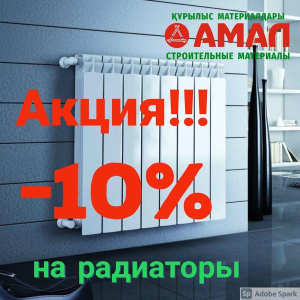 В магазине строительных товаров «Амал» стартовала долгожданная акция!! При покупке любого радиатора у нас, Вы получаете скидку -10%. Широкий ассортимент Вас удивит, демократичные цены приятно порадуют, а консультанты помогут определиться с выбором покупки!!!! Ждем Вас!!!! Наш адрес: Ул. Кудайбердиева, 2/1 С 9.00 до 20.00 без перерывов и выходных Тел.: ул.Малая объездная, 6 С 9.00 до 20.00 без перерыва и выходных Тел.:,