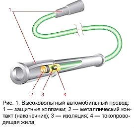 копроводящими жилами. Когда автомобили стали оснащать современными телевизорами, магнитолами, бортовыми компьютерами, то использование этого кабеля приносит неудобства. Он излучает электромагнитные помехи. Для того чтобы их понизить используют добавочные электрические сопротивления. Сегодня, для устранения помех, самым эффективным способом считают выбор высоковольтного провода с распределенным сопротивлением.